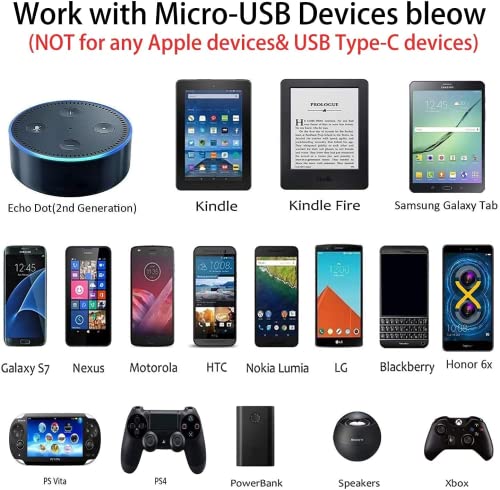 Velocità di ricarica e sincronizzazione dati più veloce Questo cavo di ricarica Micro USB Android adotta un filo di rame stagnato da 22 AWG, che supporta una ricarica ad alta velocità fino a 2,4 A e una velocità di trasferimento dati fino a 480 Mbps (supporta 12 V/1,5 A, 5 V/2 A, 5 V/1 A o 9 V/2 A). Questo cavo di ricarica Micro USB può caricare rapidamente la maggior parte degli smartphone proprio come il cavo originale.