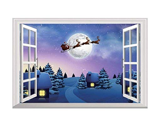 3Dsanta Claus Finestra Finta Natale, Adesivo Da Parete In Pvc Decorazione Di Capodanno Decorazione Per Bambini Adesivi Murali Rimovibili @ 50X70Cm