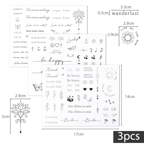 3Fogli Adesivi Tatuaggi Temporanei Fiori Scritte Tedesche Cartoni Animati Tatuaggi Temporanei Bambini Animali Tatuaggi Temporanei Uomo Donna Divertenti Accessori per Travestimento