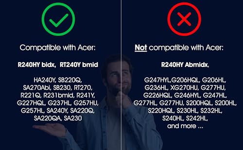 3IDEE adattatore VESA compatibile con monitor Acer (HA240Y, R240HY, SB220Q, SA270Abi, SB230, RT240, RT240Y, RT270, R221Q, R231bmid, R241Y, G227HQL, G237HL e altro) - set di viti incluso - 75x75mm