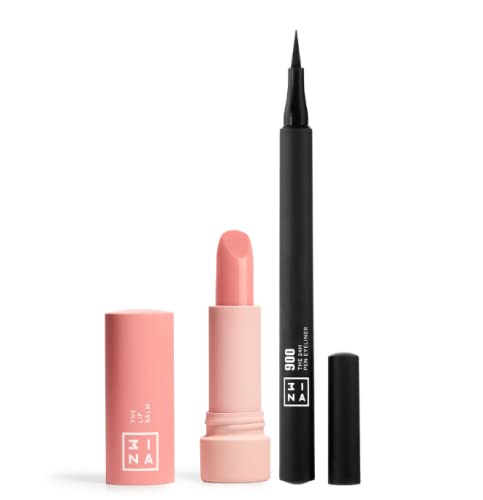 3INA MAKEUP - Vegan - Kit Balsamo Labbra + The 24h Pen Eyeliner - Pack Eyeliner Nero Matte + Trattamento Labbra Secche - Cruelty Free