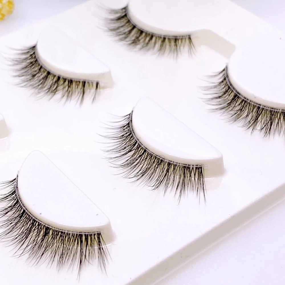 NEW 3pair Invisible Band Transparent 3D Mink Fur Lashes Natural Long Wispy False Eyelashes