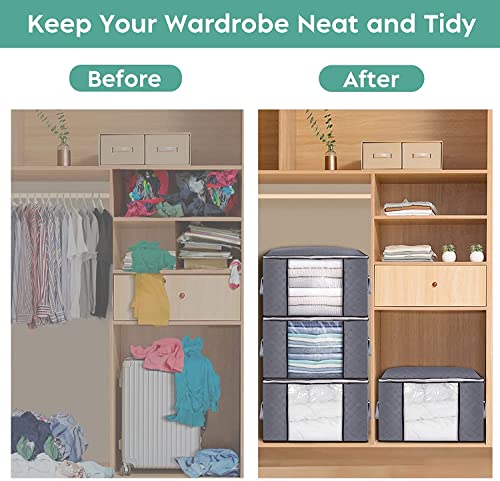 3pcs Custodia per Trapunte e Coperte, Scatole per Armadio Salvaspazio, Porta Abiti Grande Capacità con Manico Rinforzato, Contenitori per Armadio Traspirante y Inodore 60X43X35CM Grigio