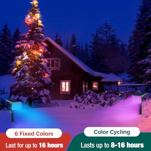 【Multi Colore RGB Faretti Solari】La faretti solari da esterno RGB, inclusi 6 colori e 1 colore che cambia automaticamente. Premi brevemente il pulsante e la luce passerà attraverso 6 colori fissi in sequenza: Rosso -Bblu - Verde - Viola - Bianco Freddo - Bianco Caldo. Premendo il pulsante per la settima volta, la luce entrerà in modalità ciclo colore, colore multiple faretti solari a led da esterno perfetta per decorare piscine, giardini, alberi, cortili, natale, halloween.