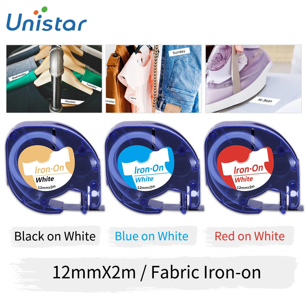 3PCS Iron Tapes A18769 Compatible for DYMO LetraTag Printer Plastic Label Tape Fabric Iron-on 12mm Pinter Ribbon A18773 A18777