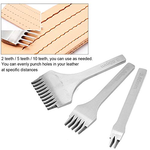 UNIFORME DI FORI UNIFORME: Il set di scalpelli in cuoio è composto da tre pezzi, 2 denti, 5 denti e 10 denti, che possono creare fori regolari sulla pelle.