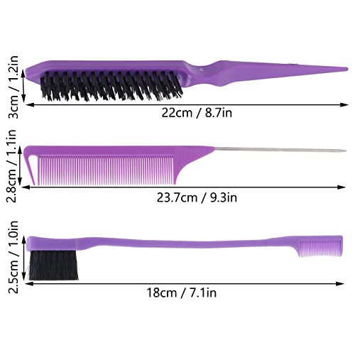 3pcs Set di Pettini da Barbiere, Spazzole per Tintura dei Capelli a Coda di Topo Styling Viola Evidenziando Riflessi Professionali Fogli Pettini per Tessitura Balayage per Salone