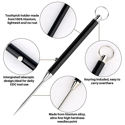 3PCS Portable Titanium Spring Shrinkable stuzzicadenti Tasca Stuzzicadenti Metallo Stuzzicadenti Chiave Ciondolo per Picnic Outdoor Camping (nero)