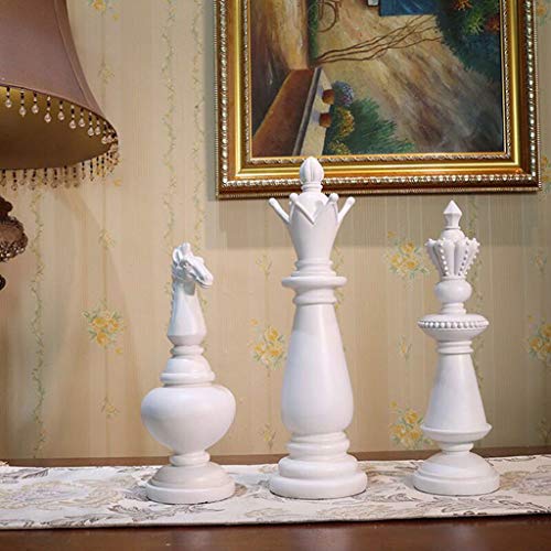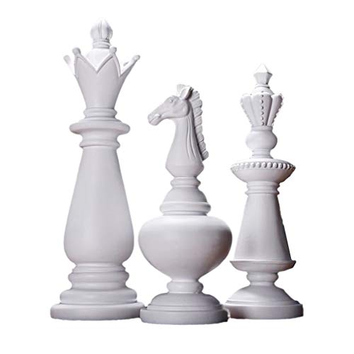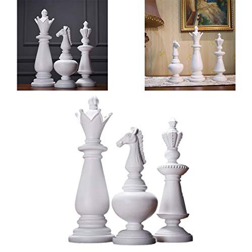 3Pcs Resina Pezzi Scacchi, re Regina Cavaliere Statue di Figure di Scacchi Figurine Internazionale di Scacchi Accessori per, Bianco