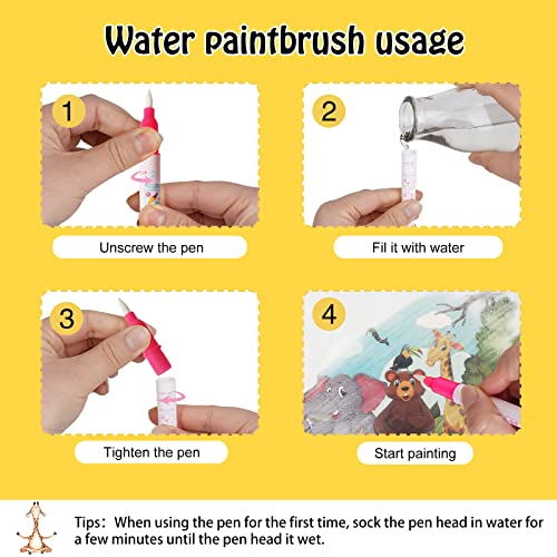 [12 pagine riutilizzabili] -- Ognuno di questi giochi acqua bambini book blocco rilegato a spirale con 4 pagine riutilizzabili e una penna ad acqua ricaricabile. Il libro da colorare con penna ad acqua è realizzato in cartone di alta qualità e non si danneggia facilmente.