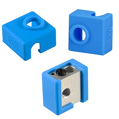 3PCS Stampante 3D Blocco riscaldato Silicone Cover Creality Accessori Silicone Calzino Isolamento Caso 280℃ Resistente ad alta temperatura per MK7 MK8 MK9 Hotend per Ender 3 CR10 ANET A8 (blu)