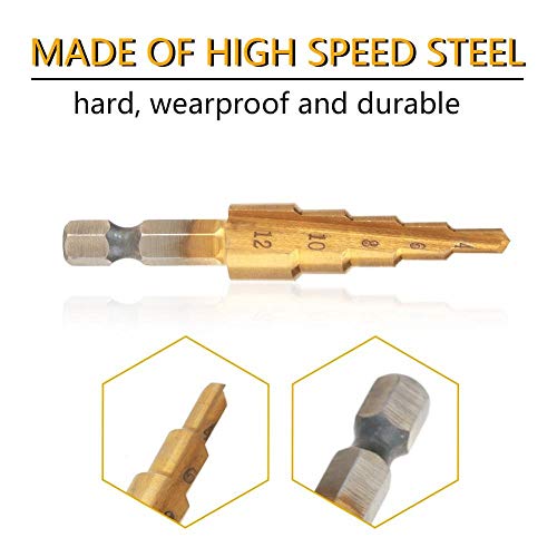 3Pcs Step Cone Drill Bit Acciaio inossidabile ad alta velocità con gambo in titanio Punzonatura 4-12/4-20/4-32mm Industrial Scientific