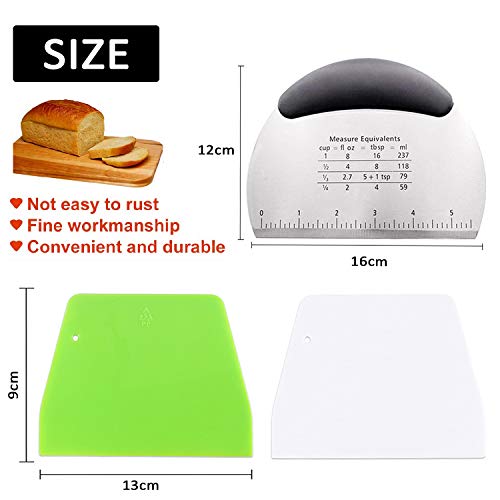 【Ampia applicazione】Raschietto Cucina di utensili da cucina può non solo tagliare pasta, pane, torte, pasticceria, pizza, ma può anche tagliare caramelle fatte in casa, brownie, dolcetti croccanti di riso, dessert e altro! Molto adatto a fornai, chef e amatori.
