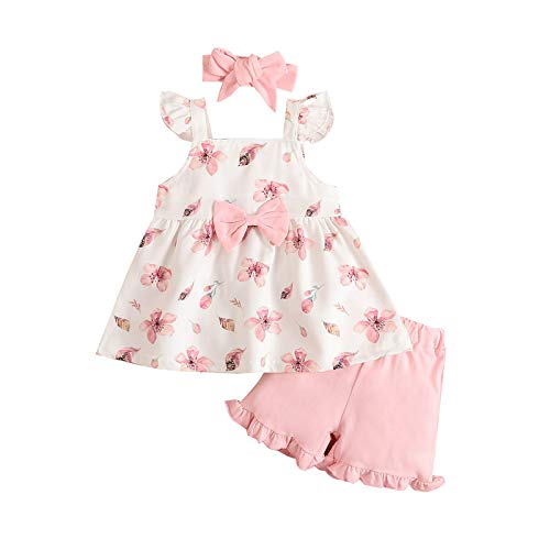 3PCs Toddler Girl Clothes Suit T-Shirt Neonato Crop Top Shorts Papillon Fascia Canotta Camicetta Estate Streetwear Shirt Pant Abbigliamento Casual Costume Outfit Set (Rosa, 18-24 Mesi)