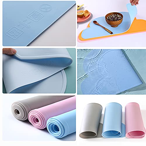 3pcs Tovaglietta in Silicone per Bambini, Tovaglietta di Silicone Anti-Scivolo, Tovagliette Tavola Forma di Nuvola Antiscivolo Impermeabile Portatile Sottopiatti (Rosa+Blu+Grigio)