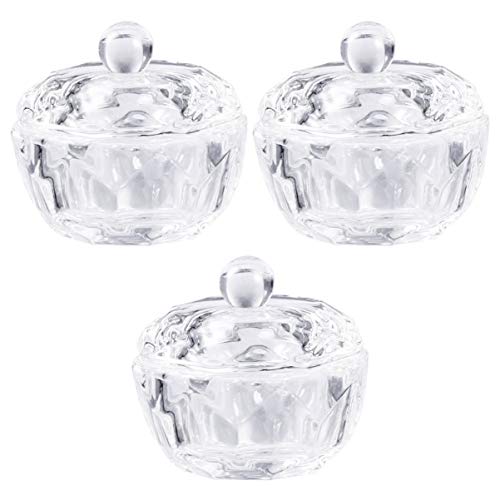 3Pcs Trasparente Nail Art Polvere Liquida Acrilica Dappen Piatto Tazza di Cristallo Ciotola di Vetro Porta Liquido Acrilico con Coperchio per Nail Art