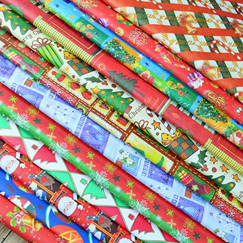 L' ACQUISTO include tre rotoli di carta da regalo di vacanza, ognuna con un diverso disegno di festa.