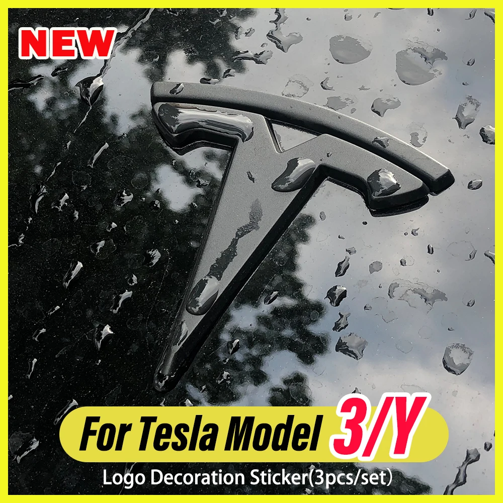 3PCS/Set Steering Wheel/ Front Trunk / Rear Trunk Logo Sticker Car Logo Cover ABS Carbon Fiber Sticker For Tesla Model 3/Y 2021