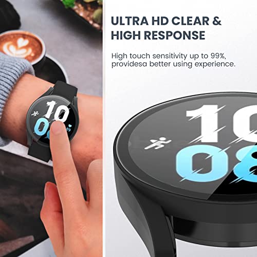 ⌚【PROTEZIONE COMPLETA】 Questa protezione per lo schermo per Galaxy Watch5 e Galaxy Wacth4 con vetro temperato può proteggere il tuo orologio da polvere, sporco, graffi e danni. Facile da installare e rimuovere, fori precisi per l'accesso a tutti i controlli e sensori, solido e sicuro. [Orologio non incluso.]