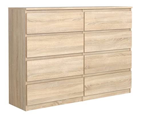 3xeliving Cassettiera con 8 cassetti 120 cm, colore Rovere sonoma, D: 120 x 39 x 101 cm