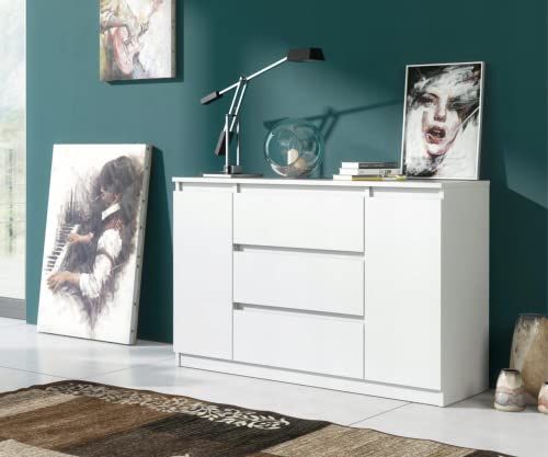 3xEliving Demi 2D3S Cassettiera, Colore: bianco, Dimensioni: L: 120 cm, P 39 cm, H: 78 cm, con due porte e tre cassetti