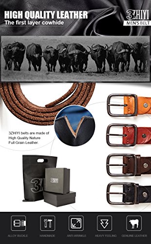 3ZHIYI Cintura Uomo 100% Vera Pelle di bufalo, cintura per jeans