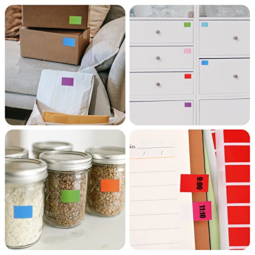 Dimensione degli adesivi colorati: ogni adesivo rettangolo misura circa 12,7 x 19 mm, piccoli adesivi, bastoni saldamente su sacchetti di pacchetto, mappe, documenti, file, cassetti, barattoli, bottiglie e così via, conveniente per classificare i tuoi effetti personali.
