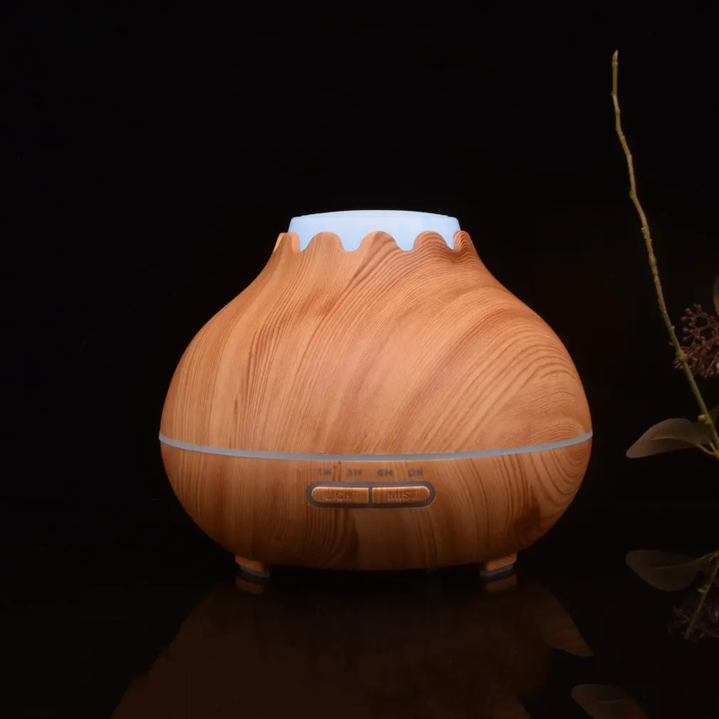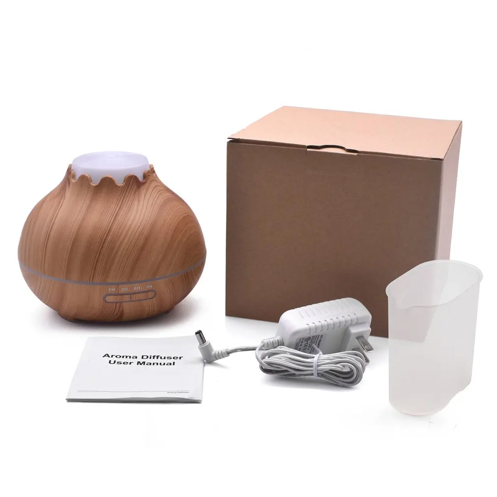 400ml Aroma Essential Oil Diffuser Ultrasonic Wood Grain Air Humidifier with 7 Color Changing LED Lights for Office Home