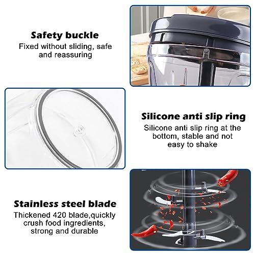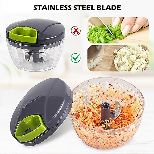 400ml Tritatutto Manuale, Tritatutto Manuale a Corda, Trita Cipolla Manuale con 3 Lame, Tritatutto per Verdure con Sistema di Assistenza, per Insalata, Aglio, Erbe Aromatiche, Patate, Frutta