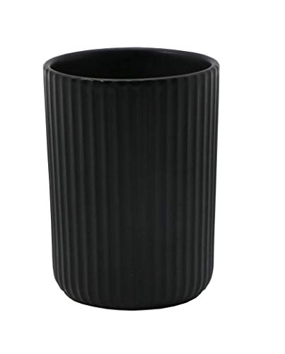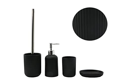 BM 4058 Set di Accessori da Bagno in Ceramica Superficie Strutturato Rigata Nero, Set Accessori Bagno Completo 4 Pezzi, Dispenser, Portaspazzolino, Portasaponetta, Portascopino