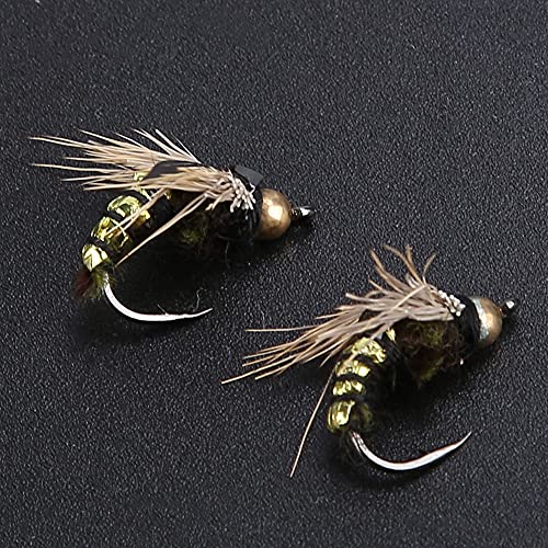 40Pcs Esche da Pesca a Mosca Realistiche Mosche di Pesca a Mosca Trota Mosche Esche Ami Fly Pesca Kit Box per Acqua Dolce Pesca in Mare(Oro)