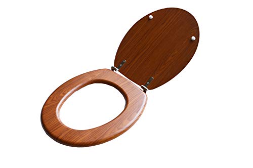 BM 4114 Copriwater Sedile Tavoletta WC Universale Coperchio Toilet Seat Bagno in MDF Marrone Legno Noce, Cerniera in Acciaio