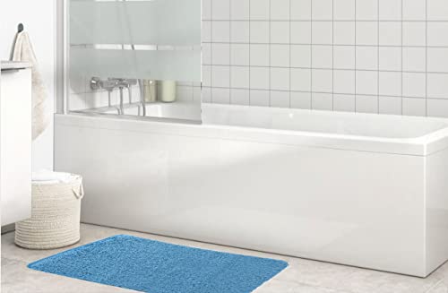 BM 4154 Tappeto Antiscivolo Assorbente a pelo in Microfibra 45x75 cm Blu Tappetino Lavabile Morbido Assorbente da Terra per Vasca, Doccia e Bagno