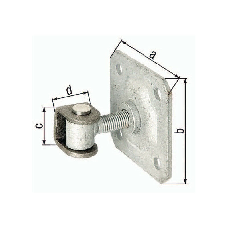 Versione: regolabile di 20 mm · Materiale a staffa a U: acciaio grezzo · Materiale per bulloni e anelli di bloccaggio: acciaio inossidabile · Superficie della vite oculare: zincata a caldo per saldatura Altre caratteristiche tecniche: · Misura c: 42mm · Dimensione d: 30mm · Misura a: 100mm · Dimensione w: 100mm
