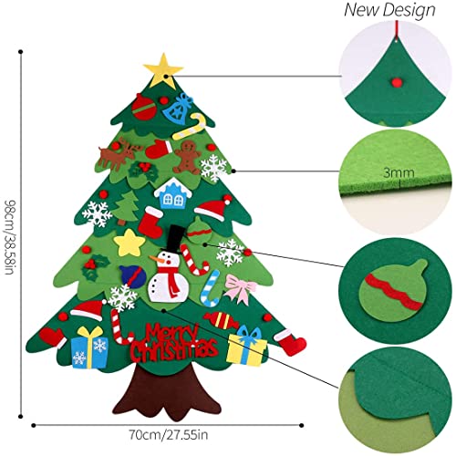 41pcs Albero di Natale in Feltro Decorazioni Natalizie, Albero di Natale in Feltro per Bambini in Feltro Fai-da-Te Set Regali per l'albero di Natale da Appendere al Muro