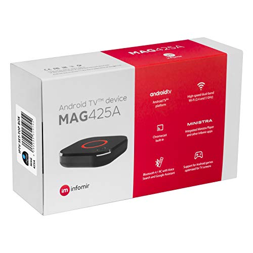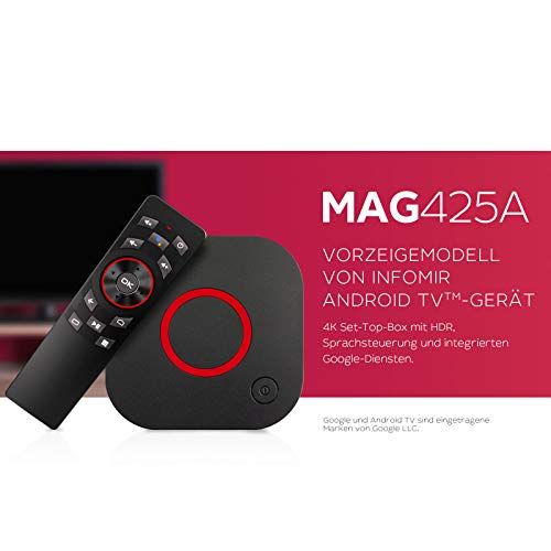 Android TV 8.0 - basato su UHD set-top box MAG425A con Google Play, supporto della piattaforma TV Ministra e telecomando Bluetooth con Google Assistant