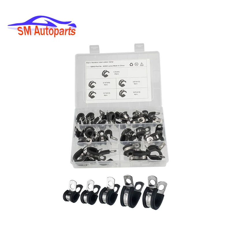 42pcs Cable Clamp Rubber Cushion Insulated Clamp Stainless Steel Cable Clamps Assortment Kit