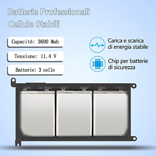 【Compatibile con】Batteria Laptop per Dell Inspiron 13 7378 7375 7368 5379 5378 5368, Inspiron 14 7472 7460 5488 5482 5480 5481 5468 3482 3480, Inspiron 15 7586 7580 7579 7573 7572 7570 7569 7560 5584 5583 5580 5579 5578 5575 5570 5568 5567 5565 5538 3583, Inspiron 17 5770 5769 5767 5765, Latitude 3180 3190 3300 3379 3380 3390 3400 3480 3490 3500 3580 3590, Vostro 5468 5568 3480 3481 3583 5471 5481 5581, WDXOR WDX0R Y3F7Y T2JX4 P69G P58F001 P58F FW8KR FC92N CYMGM C4HCW 8YPRW 3CRH3.