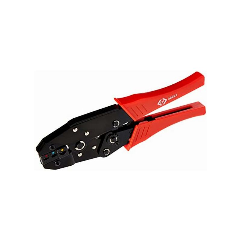 Sistema con cricchetto autobloccante con rilascio all'applicazione della pressione corretta per crimpatura precisa. Stampi realizzati con precisione per pezzi crimpati di qualità e connessioni sicure. Stampi costruiti in acciaio in lega di carbonio per forza e durata. Costruzione resistente, testata fino a 40.000 cicli, garantita per fino a 30.000 crimpature per utensile. Design ergonomico per comfort e controllo migliorati. Realizzata per la crimpatura sicura e protetta di capicorda isolati rossi, blu e gialli.