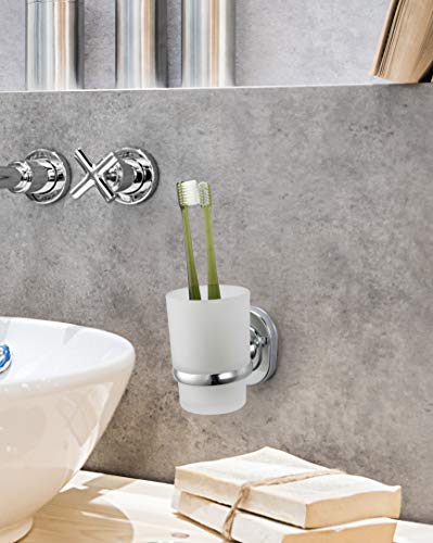 BM 4410 Porta Spazzolini Bicchiere Portaspazzolini a Muro Accessori Bagno da Parete, Acciaio Inossidabile Lega di Zinco e Vetro Satinato, Finitura Lucida Cromato