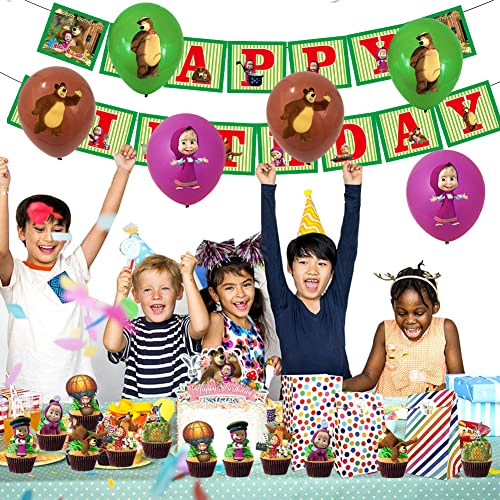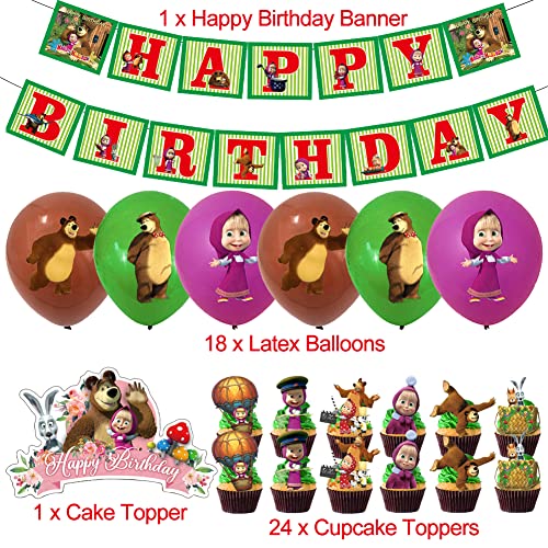 44pcs Masha e l'orsetto Palloncini Compleanno Palloncini Festa di Compleanno Banner di Palloncini con Decorazioni a Tema Orsetto per Feste per Ragazzi
