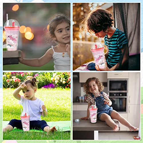 450ml Bicchiere d'acqua con Cannuccia e Coperchio Bicchiere di Plastica Doppia Parete Unicorno Riutilizzabile Bicchiere per Frullato Bottiglia per Bevande a Tenuta per Succhi Frutta Caffè (Rosa)
