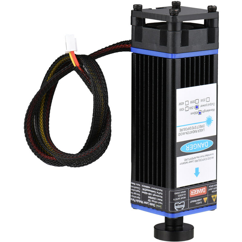 Modulo laser professionale, facile da installare, con perdite inferiori, fornisce una lunghezza d'onda di 450 nm, per un'incisione e un taglio efficienti e precisi di plastica, legno, pelle, carta e così via, adatto a un'ampia gamma di macchine per incidere. Nota: 1. Si prega di indossare occhiali laser durante l'uso ed evitare di toccare il laser direttamente con gli occhi e la pelle. 2. Le dimensioni e il colore possono essere leggermente diversi a causa della misurazione manuale e delle diverse condizioni di luce. Grazie per la comprensione. Specifiche: Potenza laser: 5,5 W/ 10 W/ 20 W/ 30 W/ 40 W (Opzionale) --Lunghezza focale regolabile: 5,5 W/ 10 W/ 20 W (20-70 mm) --Lunghezza focale fissa: 30 W (126 mm)/ 40 W (150 mm ) Colore: nero Materiale: lega di alluminio + Componenti elettronici Lunghezza d'onda: 450nm Colore luminoso: blu Tensione operativa: 12V Ingresso PWM/TTL: DC 3.3V-12V, 100Hz-50KHz Interfaccia di ingresso: XH2.54-3 Pin (+, -, PWM/TTL) Funzionamento continuo