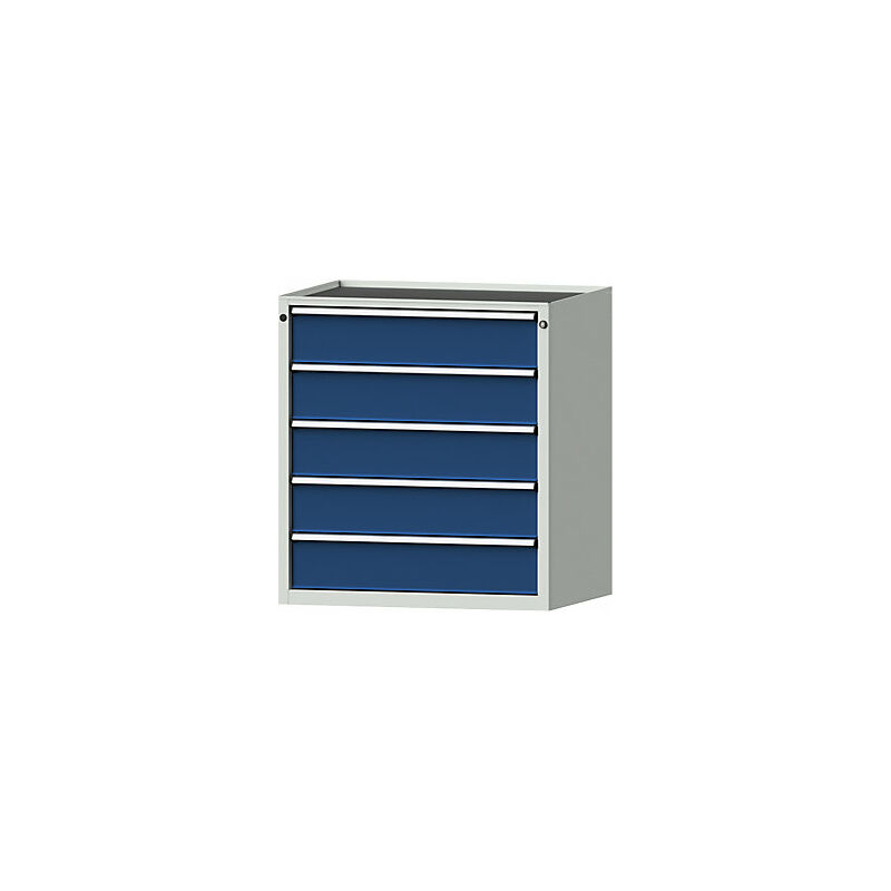 Cassettiera, largh. x prof. 910 x 675 mm, portata cassetti 200 kg, 5 cassetti, altezza 980 mm, frontalino blu genziana. Fornitura = montato. Altezza = 980 mm. Larghezza = 910 mm. Profondità = 675 mm. Portata per cassetto = 200 kg. Numero cassetti = 5 pz. Altezza cassetti = 5x180 mm. Estrazione cassetti = 100%. Colore corpo = grigio chiaro RAL 7035. Colore frontalino = blu genziana RAL 5010. Dotazione = sicure antiribaltamento. Materiale = lamiera d'acciaio, verniciata a polvere. Versione cassetti = guida a rulli. Serratura = chiusura centralizzata a cilindro. Dimensioni interne cassetti = 750x600 mm. Caratteristiche = possibilità di applicare targhette. Portata cassetti 200 kg. Estraibili al 100%, massimo sfruttamento dello spazio. Sicurezza antiribaltamento garantita da un fermo di bloccaggio singolo. Chiusura centralizzata: serratura a cilindro con nucleo sostituibile o serratura elettronica. Robusta struttura in lamiera d'acciaio verniciata a polvere. Corpo grigio chiaro RAL 7035.
