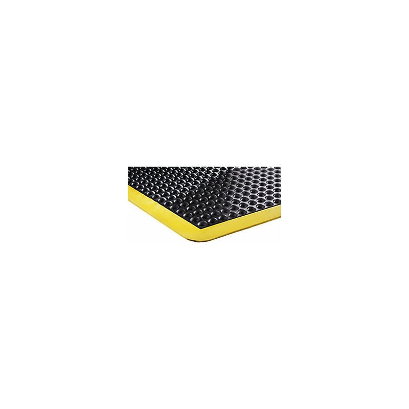 Stuoia antiaffaticamento Bubblemat safety, lungh. x largh. x alt. 1200 x 900 x 14 mm, nero-giallo, modulo iniziale/finale. Fornitura = montato. Larghezza = 900 mm. Altezza = 14 mm. Materiale = gomma naturale. Resistenza alle temperature = da -30 °C fino a +50 °C. Colore = nero-giallo. Lunghezza = 1200 mm. Peso = 10 kg. Massa = 9.26 kg/m². Versione = modulo iniziale/finale. Luogo d'impiego = per postazioni di lavoro asciutte e statiche. Caratteristiche = antiaffaticamento, antiscivolo, smussato, resistente alla luce. Postazione di lavoro = asciutto. Larghezza guide = 40 mm. Superficie = chiusa. Sollecitazione = medio. Possibili dimensioni speciali = no. Tipo di prodotto = stuoie antiaffaticamento. Ergonomiche su postazioni di lavoro statiche. Antiscivolo. Antiaffaticamento. Stuoia per postazioni di lavoro funzionale ed ergonomica con superficie strutturata. Blocca l'insorgere di sintomi da affaticamento. Grazie al pratico sistema modulare a innesto è possibile rivestire superfici in