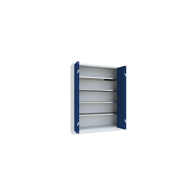 L'armadio con ante a libro offre un'organizzazione ottimale degli spazi grazie alle sue dimensioni generose e alla possibilità di regolare l'altezza dei ripiani a intervalli di 17 mm. Realizzato in resistente lamiera d'acciaio con finitura in verniciatura a polvere, garantisce durata e robustezza nel tempo. Le porte con rinforzi e serratura a cilindro offrono massima sicurezza e praticità d'uso. Con una capacità di carico fino a 400 kg uniformemente distribuiti, è la soluzione ideale per chi cerca un prodotto affidabile e funzionale per organizzare al meglio lo spazio in casa o in ufficio.