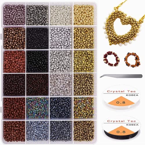 Set di 4800 mini perline di vetro da infilare, 3 mm, piccole perline per fai da te, perline con filo di cristallo e pinzette per fai da te