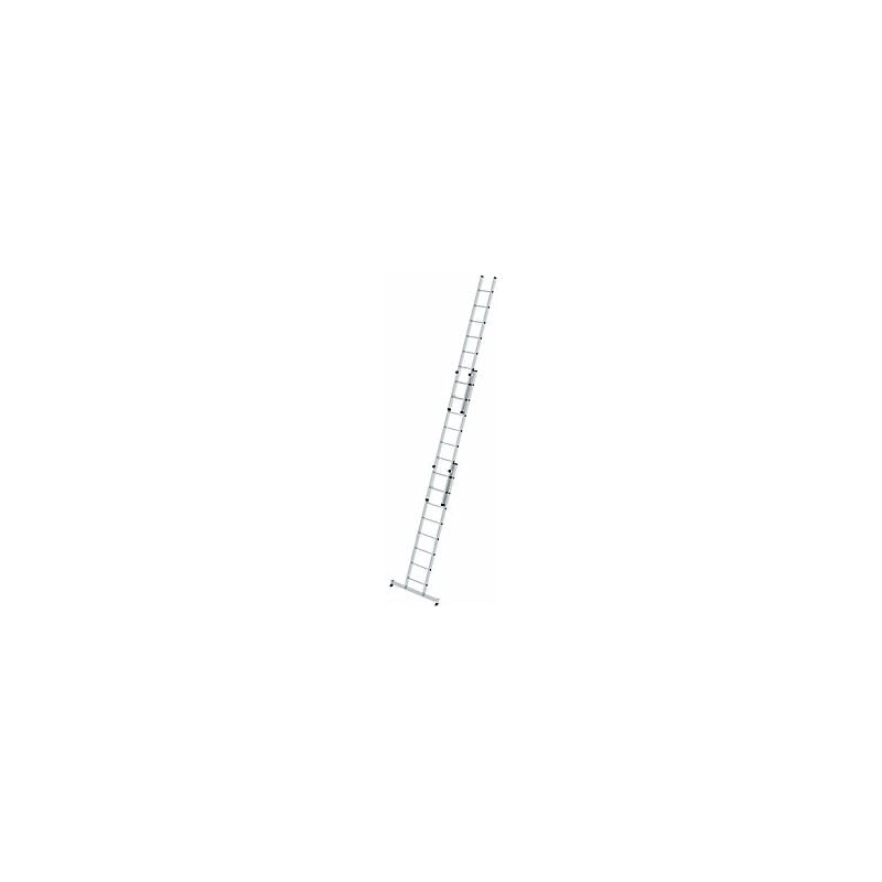 Scala d'appoggio regolabile in altezza, scala scorrevole, in 3 pezzi con traversa nivello®, 3 x 8 pioli. Fornitura = montato. Versione da salita = pioli. Larghezza = 500 mm. Altezza di lavoro = 6900 mm. Materiale telaio = alluminio. Larghezza traverse = 1200 mm. Altezza montanti = 73 mm. Portata = 150 kg. Larghezza montante = 25 mm. Materiale pioli = alluminio, mandorlato. Profondità pioli = 30 mm. Lunghezza da estratto = 5860 mm. Lunghezza da richiuso = 2500 mm. Tipo di prodotto = scale scorrevoli. Solidissimi montanti a sezione quadrata. Durevole accoppiamento piolo-montante con flangiatura di qualità. Appoggio sicuro grazie ai pioli rigati a sezione quadrata su ambo i lati, 30 x 30 mm. Con piedini antiscivolo nivello® per un'ottima aderenza al pavimento, flessibilità e sicurezza. Robuste guide di scorrimento, resistenti alla corrosione. Sicurezza ad azionamento automatico contro l'estrazione totale. Modulo superiore estraibile con passo pari alla distanza tra i pioli. Lunghezze di