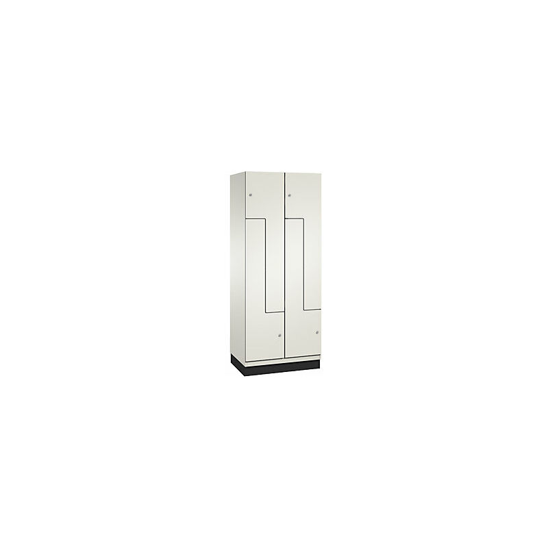 Armadietto guardaroba CAMBIO Z, 2 vani, larghezza 800 mm, corpo bianco puro / anta bianco. Fornitura = montato. Altezza = 1950 mm. Profondità = 525 mm. Larghezza = 800 mm. Colore corpo = bianco puro RAL 9010. Colore porta = bianco. Serratura = serratura a cilindro differenziata. Numero scomparti in larghezza = 2 pz. Numero scomparti = 4 pz. Larghezza scomparti = 400 mm. Materiale = lamiera d'acciaio. Altezza armadietto = 1324 mm. Dotazione interna = barra appendiabiti laterale con 3 ganci scorrevoli. Larghezza interna = 362 mm. Altezza interna = 290 / 1313 mm. Profondità interna = 480 mm. Tipo di porta = pannello con anima piena HPL. Numero chiavi = 2 pz. Altezza scomparti = 290 / 1313 mm. Larghezza ripiani = 400 mm. Profondità ripiani = 525 mm. Altezza zoccolo = 100 mm. Struttura = con saldatura. Superficie = verniciatura. Struttura in acciaio di lunga durata con ante a battente in HPL. Cerniere in acciaio inox. Finecorsa di apertura a 90°. Corpo in materiale zincato. Robusta asta