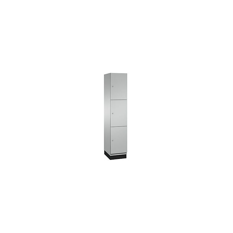 Armadietto a scomparti CAMBIO con porte in lamiera d'acciaio, 3 scomparti larghi 400 mm, corpo alluminio brillante / anta alluminio brillante. Fornitura = montato. Altezza = 1950 mm. Profondità = 525 mm. Larghezza = 400 mm. Colore corpo = alluminio brillante RAL 9006. Colore porta = alluminio brillante RAL 9006. Serratura = serratura a cilindro differenziata. Numero scomparti in larghezza = 1 pz. Numero scomparti = 3 pz. Larghezza scomparti = 400 mm. Materiale = lamiera d'acciaio. Altezza armadietto = 1950 mm. Dotazione interna = senza dotazione interna. Larghezza interna = 362 mm. Altezza interna = 562 mm. Profondità interna = 480 mm. Tipo di porta = anta in lamiera piena. Numero chiavi = 2 pz. Altezza scomparti = 616.6 mm. Larghezza ripiani = 400 mm. Profondità ripiani = 525 mm. Altezza zoccolo = 100 mm. Struttura = con saldatura. Superficie = verniciatura. Struttura in acciaio di lunga durata con ante a battente in acciaio. Cerniere in alluminio/plastica. Finecorsa di apertura a